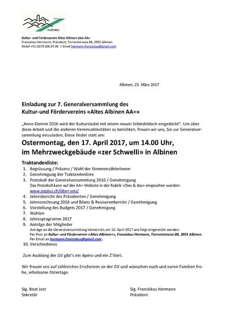 Eine interessante Generalversammlung des Kultur- und Fördervereins AA+